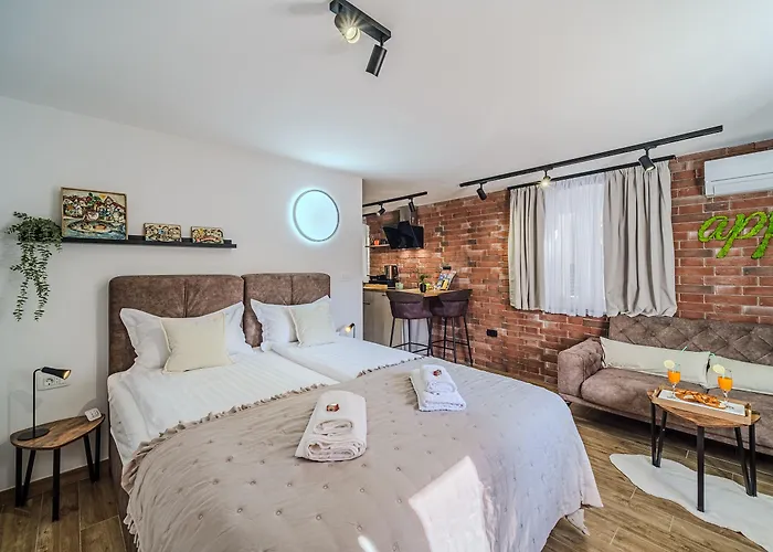 Ovaj smještaj također nudi kuhinju opremljenu električnim kuhalom, hladnjakom i tosterom. Pizzerija Konoba Pizzeria FERAL može se savršeno koristiti za obroke, a nalazi se na kratkoj šetnji od objekta. Najbliža autobusna stanica HNK - Izlaz udaljena je nekoliko minuta vožnje od apartmana.